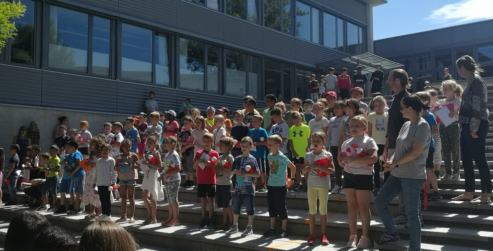 Auch dieses Jahr wurden die zwei 6. Klassen vom ganzen Primarschulhaus verabschiedet.