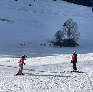 Die roten Pisten waren sehr cool. Manchmal konnten wir frei fahren. Wenn man mit dem Bügellift ganz nach oben gefahren ist, hat es sehr gewindet. Das war nicht so angenehm. Nach dem Skifahren am Morgen sind wir ins Lagerhaus und haben zu Mittag gegessen.
